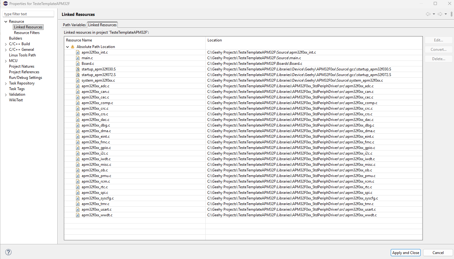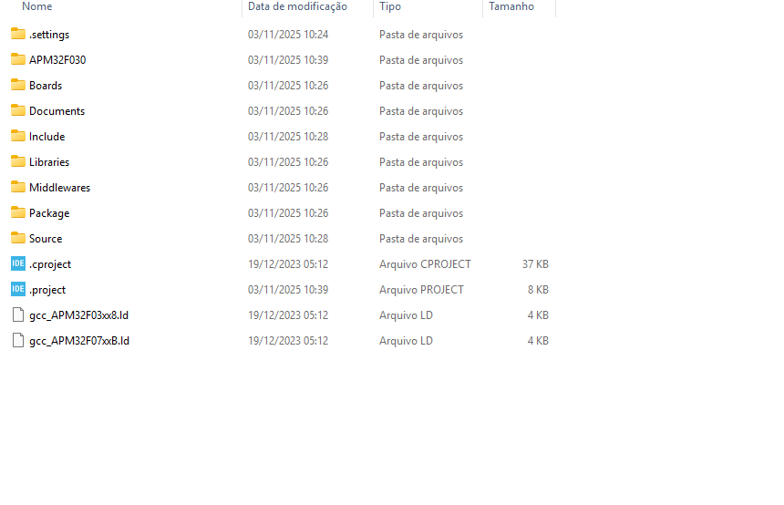 Copied a template project from Geehy’s APM32F0xx_SDK and renamed it to TesteTemplateAPM32F.