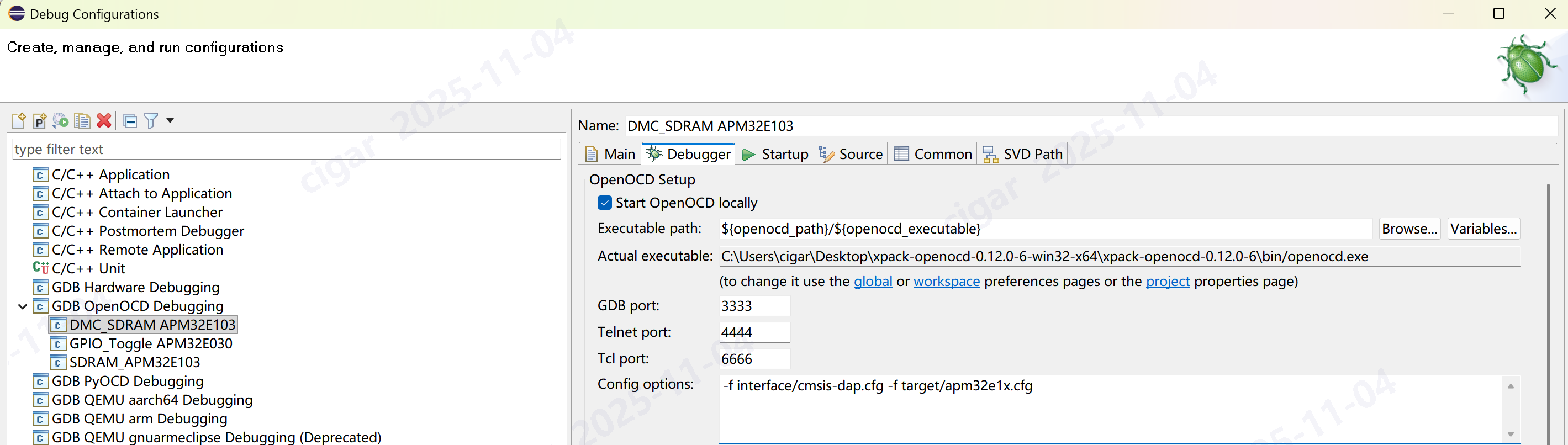 -f interface/cmsis-dap.cfg -f target/apm32e1x.cfg