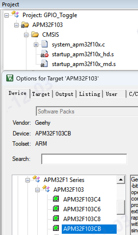 The SDK from this site is a Standard Peripheral Library for APM32F103 Medium Density or High Density products, for APM32F103CB, this MCU is Medium Density(MD), you might need to choose the correct Flash Programming Algorithm in your IDE or Programming Tools.