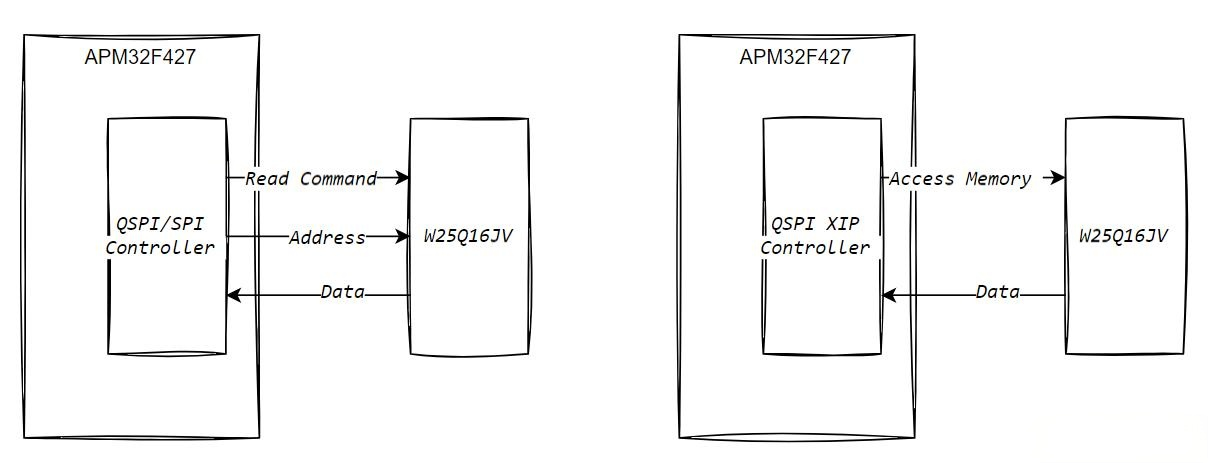 The APM32F427 utilizes QSPI XIP to significantly enhance the external Flash user experience: