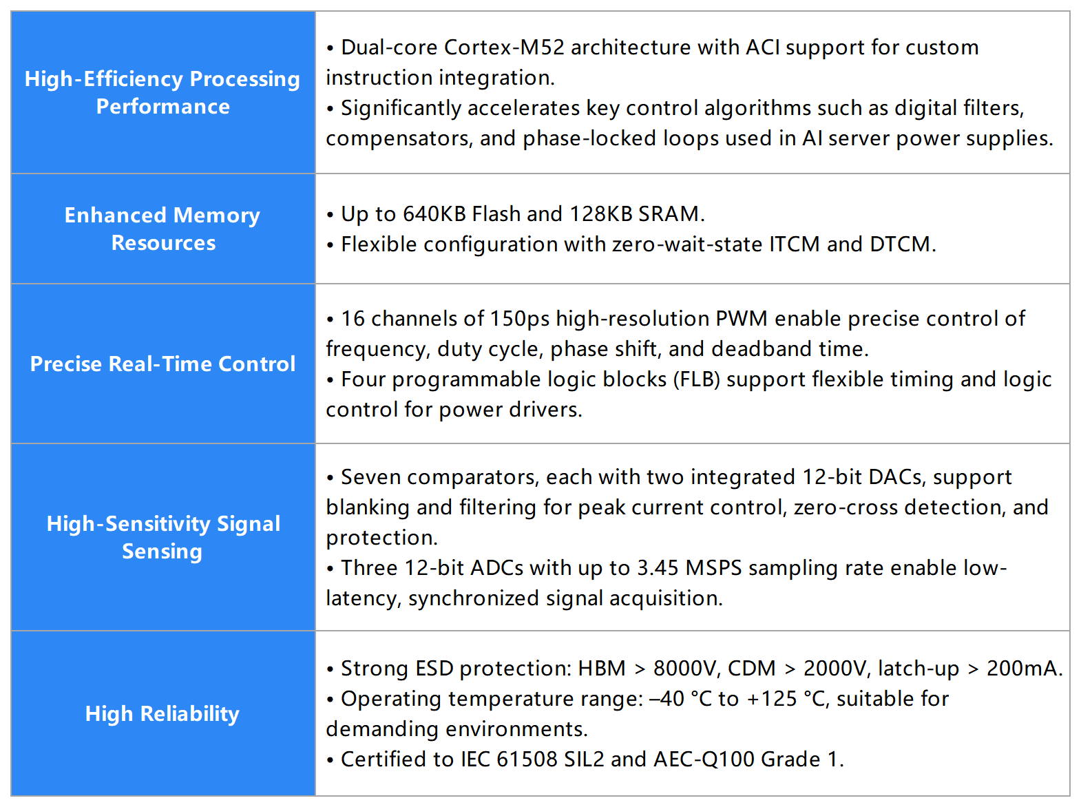 The G32R501 real-time DSP/MCUs support a two-stage power topology and meet the power requirements of 7kW–11 kW AI server power supplies.